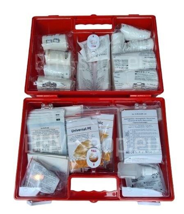 Verbandkoffer Oranje Kruis L navulling. Inhoud voor EHBO verbandkoffer Oranje-Kruis-L conform richtlijnen en door Oranje Kruis goedgekeurd. Nieuwe verbandset navulling bevat een complete set om de inhoud van de Oranje Kruis bedrijfsverbandkoffer L compleet te vervangen. Handig voor als de houdbaarheid datum van de EHBO verbandkoffer inhoud is verstreken of binnenkort verloopt. Of eventueel een nieuwe verbandkoffer kopen. Neem voor informatie contact op.