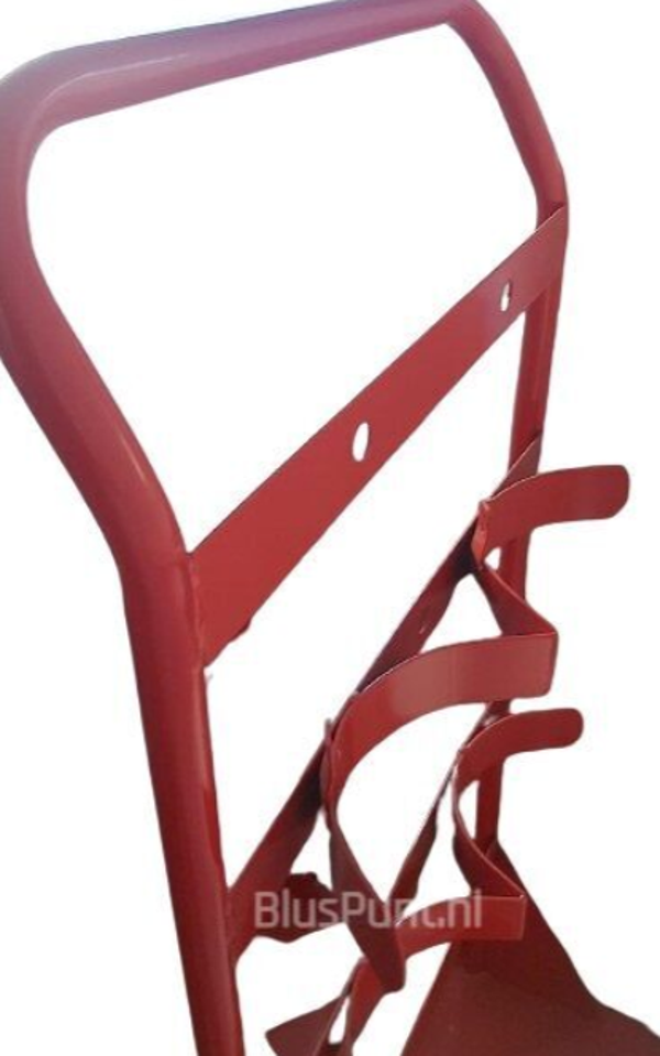 | deze stevige metalen brandblusserkar is belastbaar tot 50 kilogram | : inclusief twee gelaste ophangbeugels voor blussers |