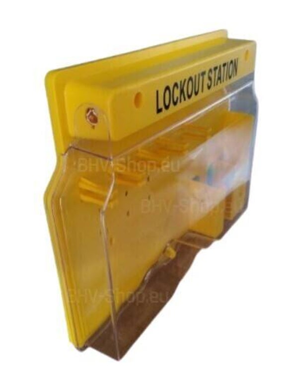 - afm. kunststof lockout-station: 32x41x6.5cm (hxbxd)