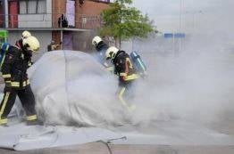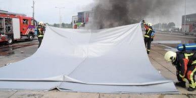 Innovatieve autoblusdeken voor doven van voertuigbrand. Grote blusdeken met afmeting van 6x9 meter voorzien van handige treklussen. De aanleiding van het ontwerp van deze autoblusdeken is dat we vanuit de media dagelijks met autobranden geconfronteerd worden. Door de autobranddeken over de autobrand heen te trekken dooft men een in brand staand voertuig. De blusdeken voor autobranden is compact opvouwbaar en vooral op plaatsen waar bluswagens van de Brandweer en Veiligheidsregio moeizaam of niet kunnen voorrijden, een uitkomst. Een prima brandblusdeken voor brandweerkorpsen en overige hulpdiensten vanwege breed inzetbare mogelijkheden. De blusdeken is namelijk niet alleen voor het doven van autobranden geschikt echter ook voor doeltreffend doven van containerbranden en andere grote objecten.