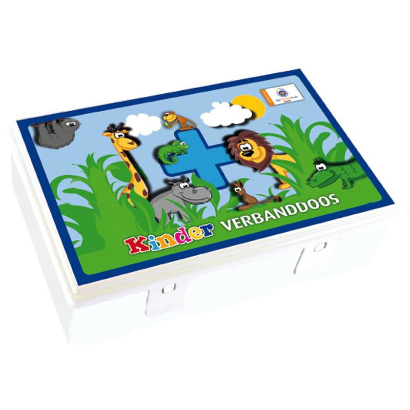 Verbanddoos kinderen. Verbanddoos voor verplegen van letsel bij kinderen met inhoud conform Oranje Kruis richtlijn. De inhoud van deze verbanddoos is afgestemd op de meest voorkomende kleine letsels bij kinderen en volgens de laatste richtlijnen van het Oranje Kruis samengesteld. Handzame verbanddoos voor letsel preventie op de peuterschool en voor kinderdagopvangverblijven. De verbanddoos wordt inclusief wandhouder geleverd. Ook in de webshop goedkope pleisterdispensers, oogspoelmiddelen en brandblussers.