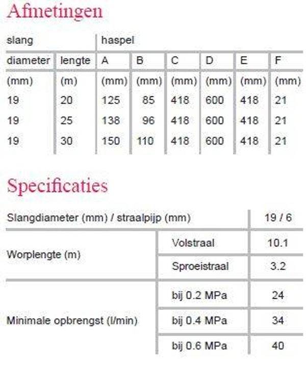 - afmeting van haspelbladen: 600mm Ø (diameter)