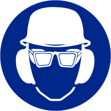 Bord helm, bril en oorbescherming verplicht pictogram: