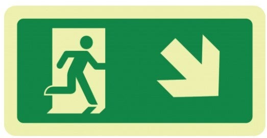 Vluchtweg rechts omlaag (bord). In bedrijfsgebouwen dienen nooduitgangen en vluchtwegen duidelijk aangeduid te worden. De projectie Norm NEN 4001:2006 is van toepassing op totstandkoming en instandhouding van de bedrijfsveiligheid in bedrijven. Deze voor bedrijven in Europa geldende Norm omvat afbeeldingen voor plaatsen van veiligheidstekens in werkomgevingen en openbare ruimten. Voorschrift is dat boven doorgangen, bij nooduitgangen, trappenhuizen en overige vluchtwegen vluchtweg borden zijn geplaatst die de dichtstbij zijnde vluchtroute aangeven. In de webshop eenvoudig online pictogrammen kopen. Neem voor informatie gerust contact op.
