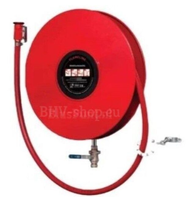 Aanbieding brandslanghaspel voor bedrijfspanden en gebouwen van instellingen en overige organisaties. In de projectie mag u vijf meter worplengte van de straal bij de brandslang lengte optellen. Een 30 meter brandslang telt dus in de projectie voor totaal 35 meter bereik door uw pand. Brandslanghaspel voor bedrijven, winkels en ook gebouwen van verenigingen en instellingen. Brandhaspels dienen conform eisen toezichthoudende instanties en de onderhoudsnorm EN-671-3 jaarlijks onderhouden te worden. Ook dient in ieder 5e jaar na aankoop de brandslang op maximale werkdruk (12 bar) getest te worden. Dit is om te controleren of de brandslang na verloop van tijd niet lekt. Deze brandslanghaspel wordt geleverd in de kleur RAL 3000. Brandslanghaspel van degelijke kwaliteit dat zich in probleemloos gebruik, lange levensduur en een gegarandeerde bluskracht vertaald. Na productie verlaat de brandslanghaspel pas na een grondige kwaliteitscontrole goed verpakt de fabriek. In de webshop eenvoudig online brandslanghaspels, brandblussers, pictogrammen en BHV EHBO veiligheidsartikelen kopen. Neem voor advies en informatie gerust contact met ons op..!